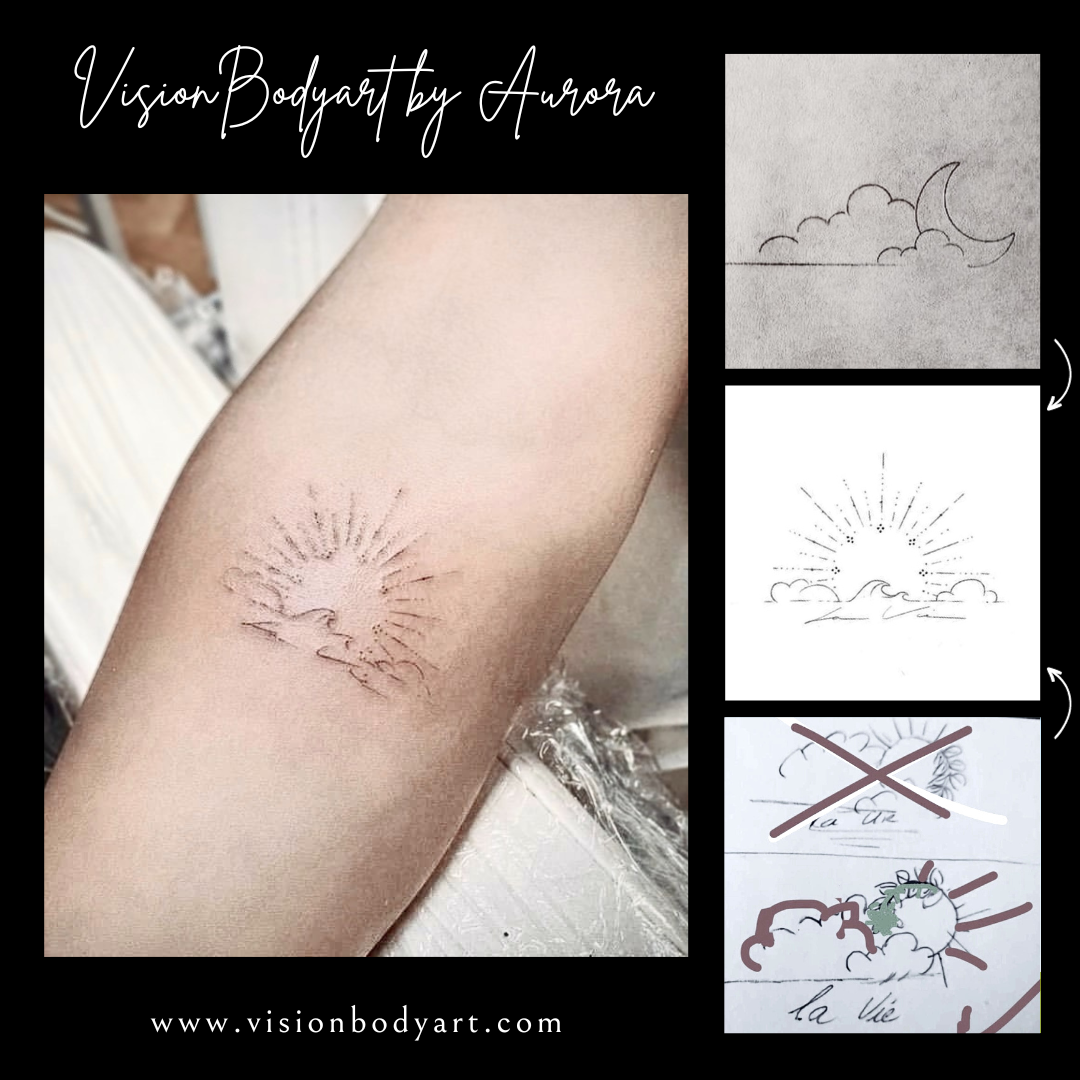 • Es braucht manchmal 1-2 Tage nur für die digitale Fertigstellung, deswegen: Ein DESIGN-TERMIN muss vor dem Tattoo-Termin gebucht sein und hat ZUSÄTZLICHE KOSTEN.